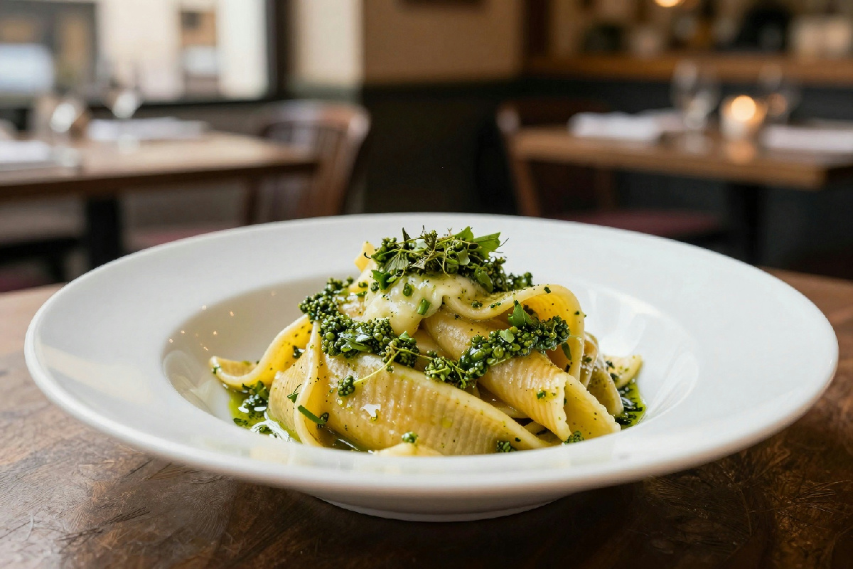 Cucinare un primo piatto innovativo con pesto di gemme di abete a Milano Cortina