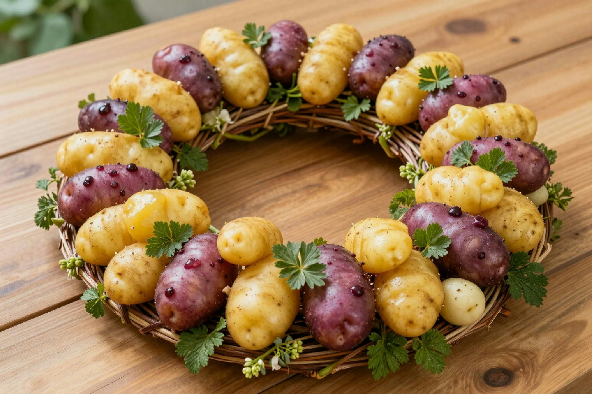 Ingredienti freschi di stagione per una ghirlanda di patate irresistibile