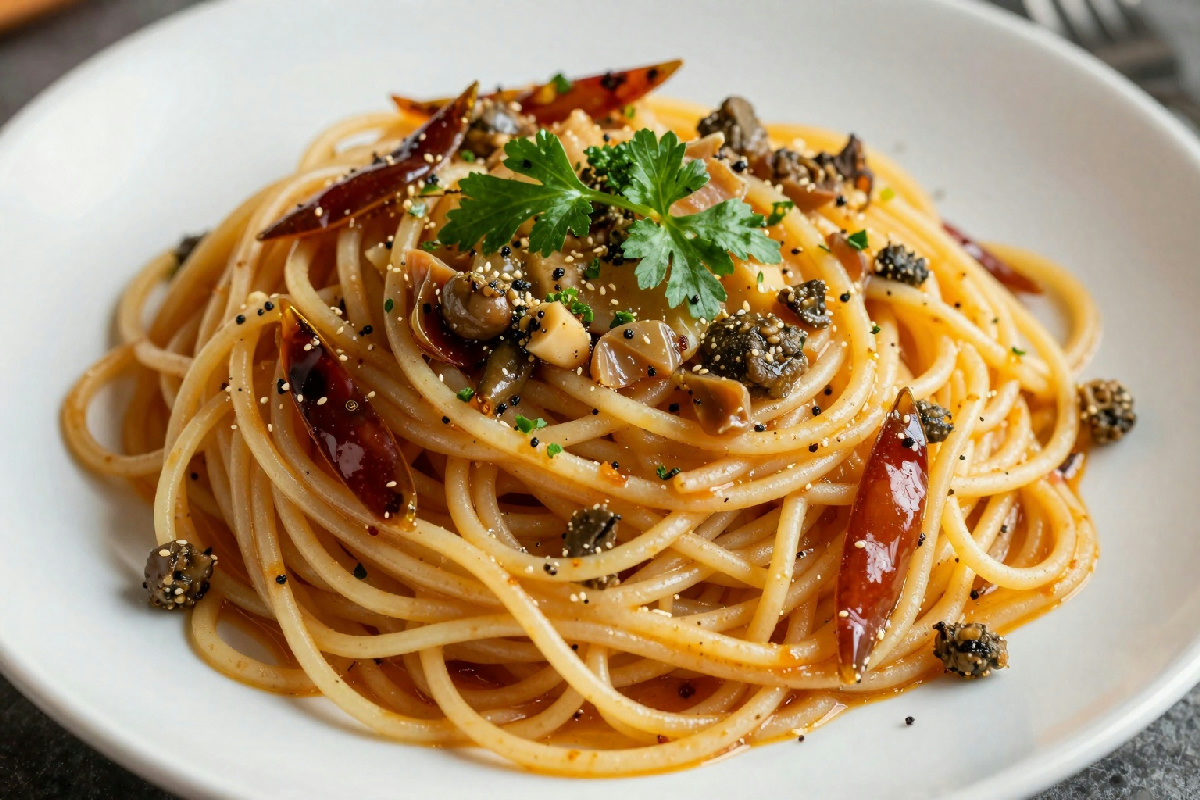 Hai idea qual è l’errore che fanno tutti? Io stesso ci sono cascato in passato: cucinare la pasta troppo a lungo. Rispetta i tempi di cottura per ottenere un risultato ottimale. Un altro errore comune è non prestare attenzione alla temperatura dell’olio. Se l’olio è troppo caldo, l’aglio si brucerà e il piatto risulterà amaro. Anzi, non solo amaro, ma perderà anche quel profumo avvolgente che rende il piatto unico. E alla fine ah, e assaporare il piatto prima di servirlo: a volte basta una spolverata extra di pepe o un pizzico di sale per fare la differenza. E, se vuoi esagerare, un po’ di scorza di limone grattugiata prima di servire può dare un tocco di freschezza che non ti aspetti.