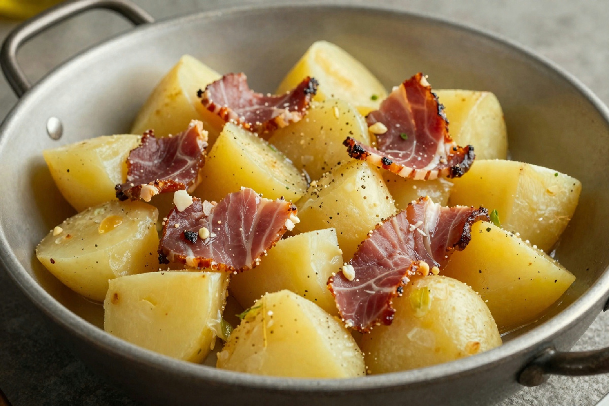 Verza strascinata con patate e pancetta: un contorno tradizionale che evoca sapori di famiglia